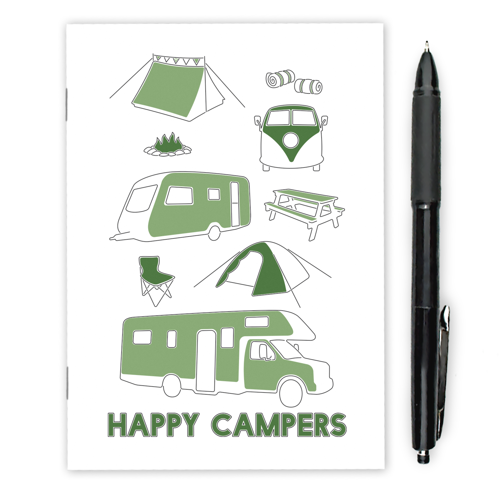 Our camping notebook features illustrations of a variety of camping equipment and accessories, including tents, a camper van, a motor home and a caravan. It contains 24 blank pages ready to be filled with all kinds of notes and scribbles - perhaps your plans and packing lists for your next trip, or a bucket list of your must-visit destinations? Similarly, it would make a fun and useful gift for any keen campers you know.